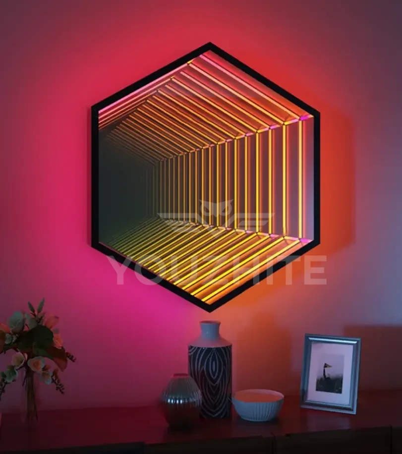 The 3D LED Infinity Mirror is a truly captivating product that will leave you spellbound. Featuring a unique optical design and mesmerizing visual effects, the mirrored light and shadow create an endless sense of depth—like gazing into an abyss, profound and alluring, as if infinite mysteries lie hidden within. Through the principles of light refraction and reflection, it creates a dreamlike spatial illusion. Perfectly merging art and technology, it suits any industry and setting. Whether enhancing commercial spaces to captivate customers or elevating home interiors with artistic flair, it instantly elevates ambiance. The Infinity Mirror excels in every application. More than just a mirror, it’s a master of unique visual experiences, inviting you to discover unprecedented spatial light-and-shadow visual magic.