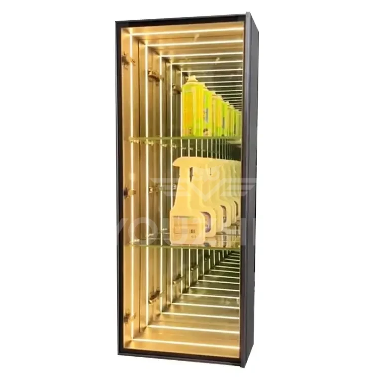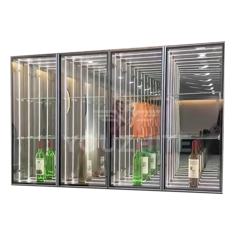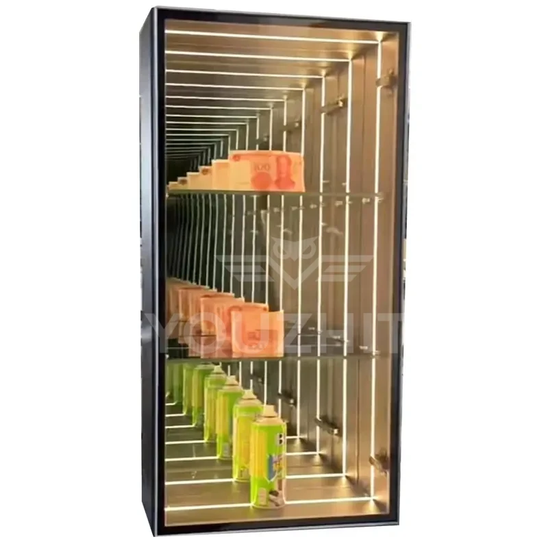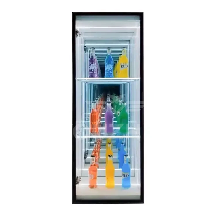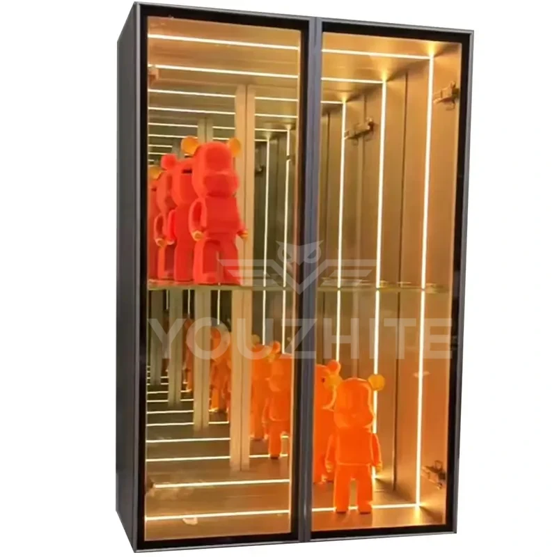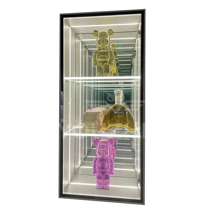 3D Infinity Mirror Display Cabinets and Abyss Mirror Display Cabinets transcend mere display units—they are optical artworks that seamlessly blend optical artistry with functional storage. Designed to showcase decorative ornaments, they deliver uniquely captivating visual effects. Customizable illuminated logos and graphics are available, featuring multi-layered mirrors and integrated LED lighting. Through infinite reflection principles, these cabinets bestow a “floating” three-dimensional effect upon displayed ornaments, art pieces, or luxury goods. Amidst interplay of light and shadow, each piece appears transported through a temporal tunnel, radiating profound depth and mystique. These cabinets become dynamic focal points within any space, redefining high-end display aesthetics.