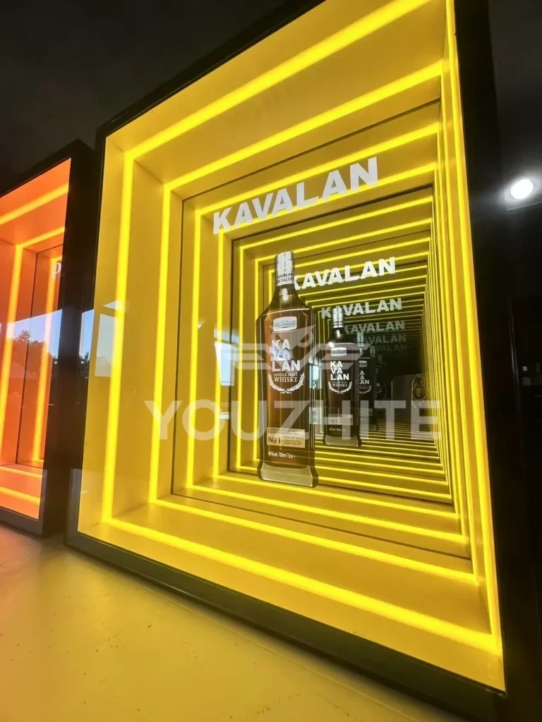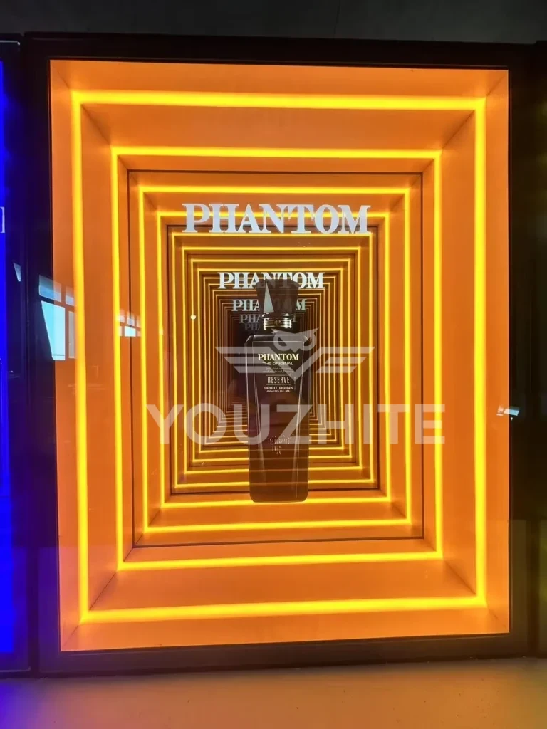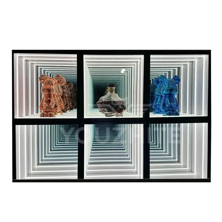 3D Infinity Mirror Display Cabinets and Abyss Mirror Display Cabinets transcend mere display units—they are optical artworks that seamlessly blend optical artistry with functional storage. Designed to showcase decorative ornaments, they deliver uniquely captivating visual effects. Customizable illuminated logos and graphics are available, featuring multi-layered mirrors and integrated LED lighting. Through infinite reflection principles, these cabinets bestow a “floating” three-dimensional effect upon displayed ornaments, art pieces, or luxury goods. Amidst interplay of light and shadow, each piece appears transported through a temporal tunnel, radiating profound depth and mystique. These cabinets become dynamic focal points within any space, redefining high-end display aesthetics.